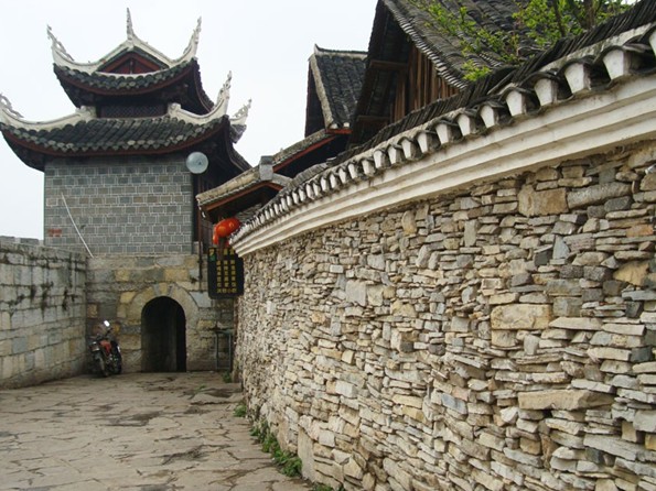 天龍屯堡古鎮(zhèn)地處西進云南的咽喉之地,在元代這里就是有名的順元古驛道,天龍屯堡古鎮(zhèn)最早是順元古驛道上的一個驛站,名叫飯籠驛。由于軍事地理位置重要,從明代開始就在這里及周邊大量屯兵,時至今日依然如幫,這里仍是駐軍重地。 清朝康熙年間,云貴總督范承勛奉旨實行“改土歸流”后,屯堡人由軍戶轉變?yōu)槠胀ò傩?。天龍屯堡古?zhèn)更名為“飯籠鋪”,由于地理位置的重要性,這里依然是清廷的驛站和屯兵重地。歷代的屯兵都在這塊大地上留下了歷史的遺跡:明朝征南軍隊在天臺山背后的兵器加工場所(本地人呼之為“打鐵坑”);煙堆山的明代烽火臺殘壘;圍繞天臺山的古城墻;清“威同之亂時”修建有垛口、炮臺、瞭望哨的龍眼山屯,至今殘垣尚存;在天龍屯堡古鎮(zhèn)中,則是巷道縱橫交錯,遍布于巷道中的深邃搶眼,石拱門一夫當關,版權所有山東聊城聊之旅國際旅行社有限公司,轉載必究!萬夫莫開的軍事功能,這一切無不顯示出戰(zhàn)爭的遺跡,屯堡人武備的思想。明代飯籠驛最初的建設者是如今天龍“張、陳、沈、鄭”四大姓的入黔始祖?zhèn)儯貏e是身為“通政大夫”的陳典(注:通政大夫是主管郵政的官吏),在天龍設驛站,建塘房(塘房是驛站供來往人員住宿的地方),其他三大姓入黔始祖則建“屯堡”屯扎軍隊。天龍屯堡古鎮(zhèn)是一個軍事防御功能完善的屯堡建筑典范,它四周建有石拱門,巷道如網,易守難攻,橫跨在古驛道上,是上扼滇喉,下控湘、粵的軍事重地。