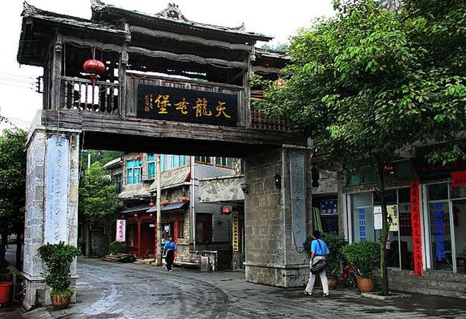 天龍屯堡古鎮(zhèn)位于貴州省西部平壩縣,喀斯特地貌大山深處,有天臺山、龍眼山兩山脈,距貴陽市72公里。這里地處西進云南的咽喉之地,在元代就是歷史上有名的順元古驛道上的重要驛站,名“飯籠驛”。明初時,朱元璋調北鎮(zhèn)南,在這里大量屯兵,兵來自江浙漢族,本世紀初被當?shù)厝迨扛拿麨?ldquo;天龍屯堡”。