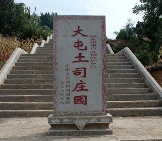 始建于清道光年間(公元1821一1850年),占地5000余平方米,建筑面積1200平方米,坐東向西,依山按中軸對稱三路構筑布局,逐級升高,縱深遞進,呈長方形。相傳是彝族土司余象儀所建,后經(jīng)余達父擴建始成今狀。它依山勢而建,面臨緩坡低平的臺地。莊園整體布局為中軸大體對稱的大規(guī)模三路構筑,各路皆有三重堂宇。左路建筑有東花園、糧倉、繡樓等。東花園也稱“亦園”,用于接待客人。園內(nèi)有花圃客房等,其建筑十分精美?;ㄆ藻e落有致,客房裝修華麗,院壩青石鋪就,院墻彩繪粉飾,古色古香,十分幽雅。中路建筑有大堂、二堂和正堂,各路堂宇之間均有石壩或內(nèi)墻間隔。高大的磚筑院墻,墻檐下砌筑斗拱,顯得古樸厚重。墻外四周分別筑有碉堡6座,各有其形,各有其用。猶可想見,當年的土司莊園守備森嚴,肅穆莊重。院內(nèi)進深80余米,橫寬60余米,整個占地面積6000余平方米,建筑布局層層深進、重重冶高,氣勢宏偉壯觀。其石作、木作以及家具雕刻的各類圖紋具有鮮明的彝族文化藝術特征,是研究民族、民俗學的珍貴實物資料。傳說當年參加修筑莊園的近300名工匠歷時3年之久方才大功告成。解放后莊園先后為大屯鄉(xiāng)政府、龍場中學等單位使用。1984年由國務院公布為全國重點文物保護單位。1985年大堂不慎失火燒毀,1994年國家文物局撥款60萬元進行維修,版權所有山東聊城聊之旅國際旅行社有限公司,轉(zhuǎn)載必究!第一期工程恢復了大堂、西花園等建筑。有機會來到大屯土司莊園的人們,無不為這古樸典雅、莊重宏偉的建筑贊嘆,無不為這瑰麗多姿、技藝精湛的藝術所陶醉。她恰如一部凝固的音樂作品,使人如癡如醉,大有“余音繞梁”之感。層層院落,一亭一院一個景,千姿百態(tài)各具特色。大廳古樸莊重,花園千嬌百媚,水榭玲瓏秀美,樓臺亭亭玉立。既有古代殿宇的風格,又不乏彝家建筑的氣派,真可謂是“十步一個景,一景一重天”。漫游在花園小徑,流連于亭臺樓閣,仿佛置身仙山瓊閣。使人倍感新奇,樂而忘返。