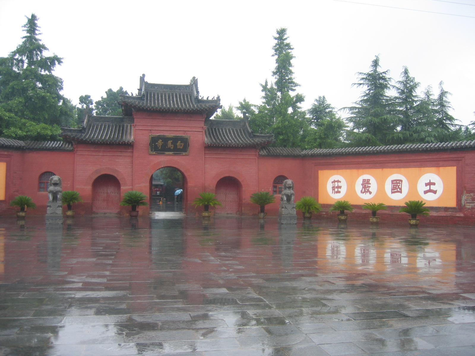 洛陽白馬寺[2]為中國第一古剎,世界著名伽藍,乃佛教傳入我國后官辦的第一座寺院,被中外佛教界譽為"釋源"、"祖庭"。白馬寺創(chuàng)建于東漢永平十一年(公元68年)。史載:東漢永平七年,漢明帝劉莊因夜夢金人,遣使西域拜求佛法。公元六十七年,漢使及印度二高僧攝摩騰、竺法蘭以白馬馱載佛經(jīng)、佛像抵洛,漢明帝躬親迎奉。公元六十八年,漢明帝敕令在洛陽雍門外建僧院,為銘記白馬馱經(jīng)之功,故名該僧院為白馬寺。 白馬寺座北面南,總面積二百余畝,其主體建筑有:天王殿、大佛殿、大雄殿[2]、接引殿、毗盧閣五層殿堂及中國第一釋迦舍利塔。白馬寺是一處保存完整、古色古香的古建筑群。1961年被國務(wù)院公布為第一批重點文物保護單位。1983年,被國務(wù)院確定為漢族地區(qū)佛教全國重點寺院。2001年1月,被國家旅游局評為首批4A景區(qū)。