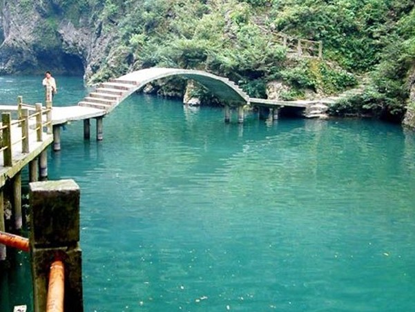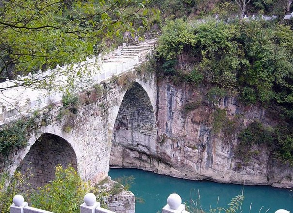 其中心景點(diǎn)為三江匯合處,三水斗奇,景致頗佳。溯三江而上,南連魚(yú)梁江古渡口響琴峽,北望沙河之濱的道教圣地福泉山,西走諸梁江畔仙人洞。在三江匯合處,絕壁高峻,雄渾磅礴,江心兀立巨石一塊,高約數(shù)十米,稱“將軍過(guò)河”,又有張三豐趕羊遺下的“金鞭石”之說(shuō)。距沙河水約50米處,有一道瀑布,其下橫生一石,稱“金龜戲瀑”。 灑金谷的景物都有一個(gè)個(gè)美麗的傳說(shuō),如“牛王投井”、“黑熊抱美女”、“豆腐橋”、“草鞋井”等等。古城垣、古橋、古驛道、古摩崖石刻,讓游客置身一個(gè)遠(yuǎn)離現(xiàn)代喧囂都市的凈土。“豆腐橋”更以其精湛的造橋工藝載入了中國(guó)橋梁史。版權(quán)所有山東聊城聊之旅國(guó)際旅行社有限公司,轉(zhuǎn)載必究!在橋頭還保存著歷代騷人墨客留下的詠橋詩(shī)篇。