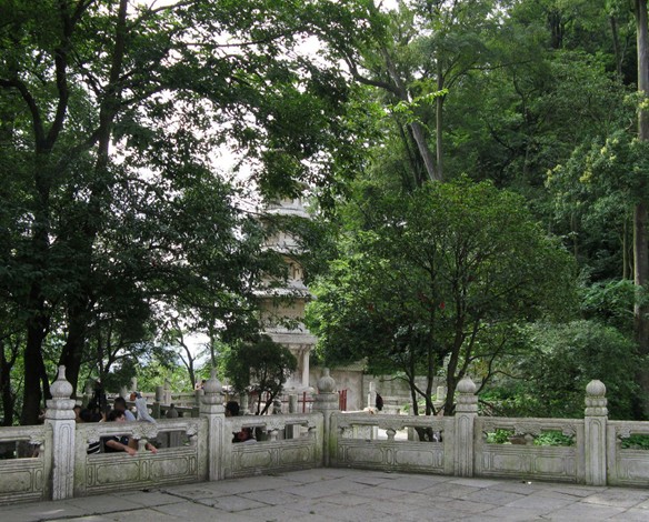大殿后有一高臺,前立二碑,乃朱德、董必武游黔靈山詩碑,碑后石壁嵌有多塊鐫刻,撰者為乾隆初年云貴總督吳達菩、貴門州巡撫劉藻、赤松和尚等。弘福寺不僅殿樓林立,還間有“風(fēng)尺亭”畫廊、“月明池”、“生生泉”“望城臺”等。寺后毗盧峰下有塔林,為弘福寺歷代祖師及僧人、居士之靈骨安藏處,有名可考者計有赤松、瞿脈、參之、惺慧、光燦、弗云、湛然、柏青、心月、智明、慈云、覺崇。