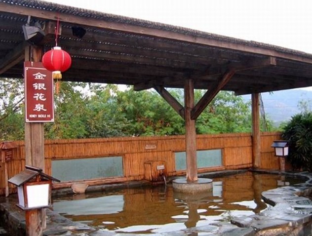 明皇御溫泉位于貴州省開陽縣雙流鎮(zhèn)白馬洞熱水村,距貴陽58公里,距貴遵高等級(jí)公路久長收費(fèi)站10公里。占地面積1.83公頃,叢林環(huán)抱,依山傍水。明皇御溫泉酒店為園林式設(shè)計(jì),一色的古典中式建筑,帶著濃郁的盛唐遺風(fēng),傳承著皇家園林的古樸與厚重,是以吃、住、娛樂為一體的休閑度假溫泉準(zhǔn)四星酒店。酒店內(nèi)兩大浴區(qū)分設(shè)男、女賓部,一號(hào)浴區(qū)以“六沸湯池”、“浴療包房”、“露天麒麟池”為特色,二號(hào)浴區(qū)設(shè)室內(nèi)32℃恒溫泳池和42℃半園池及休息廳。園中一大池,名為“貴妃池”,四周飾以輕紗薄幔,隨風(fēng)拂動(dòng),似有若無。園內(nèi)的茶部陳設(shè)著各類奇石,40余塊貴州龍化石尤為引人注目。漫步在古銀杏樹下、大小700株盆景旁,欣賞著400余幅來自杭州書畫院名家的精品書畫,思緒悠然。 御園內(nèi)設(shè)有禮、茶、賓、療、浴、膳六部,還設(shè)有大小會(huì)議室四間及禮儀服務(wù)、卡拉OK廳、露天網(wǎng)球場(chǎng)、羽毛球場(chǎng)。明皇御溫泉井底溫度45℃,水中含有對(duì)人體有益的鍶、鋰、鋅、硒等微量元素,PH值7.64,水質(zhì)屬于軟性水。版權(quán)所有山東聊城聊之旅國際旅行社有限公司,轉(zhuǎn)載必究!水質(zhì)清純,可飲可浴。