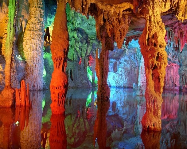 陽朔境內有一處唯一可兼水陸游覽的溶洞——聚龍?zhí)?。這個“藏龍臥虎”的地方,分黑巖和水巖兩大巖洞。聊城旅游網(wǎng)版權所有聊城聊之旅國際旅行社有限公司,轉載必究!在近千米長的游道中,約四分之一的路程可乘船游覽。水道旁又設有安全防護棧道連通。水陸游程,皆可隨游客自己選擇。全程用時約60分鐘。
