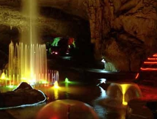 牟珠洞 亦名憑虛洞,位于清定橋村,距貴定縣城13公里,僅次于盤江到貴定公路右側(cè)的古驛道邊,。明清以來,洞為名洞,寺為名剎。洞前有雷鳴洞,洞麓有飛瀑,瀑布下有一潭,泉水清澈,游魚可數(shù)。潭邊樹木蔥蘢,是避暑佳境;洞千余米,洞內(nèi)有2丈多高的石柱一根,洞內(nèi)的鐘乳石,狀如游龍臥虎,走象啼猿,或肖似“八仙過江”、“合和二仙”,或云吳三桂擬將洞內(nèi)石術(shù)鋸倒搬往云南,因雷擊而止,今“鋸痕”猶存。