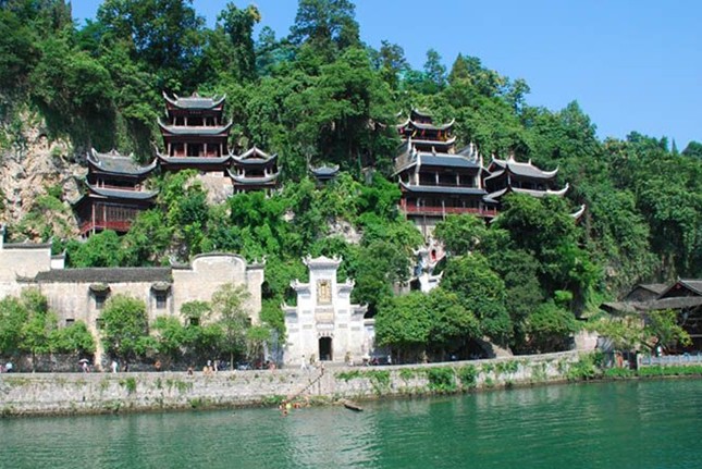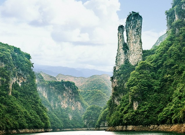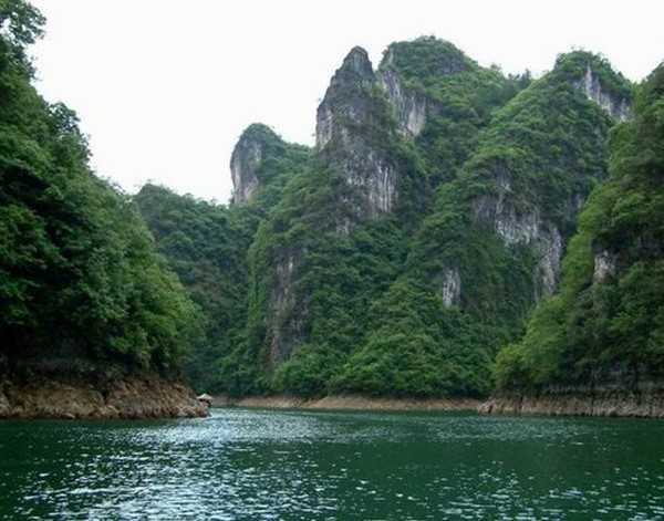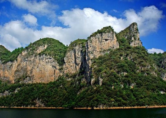 景區(qū)以高峽平湖、瀑泉飛流、喀斯特為主體;山色水韻風(fēng)光迷人。“破鏡重圓”半含水中半露崢嶸;鴛鴦夫妻結(jié)隊(duì)?wèi)蛩?,情深意濃;奇妙的三疊水、珠落玉盤直瀉深潭;喊泉神靈有喊必應(yīng),呼之水出、止呼水隱;石峰神形如“孔雀開(kāi)屏 ”、形態(tài)逼真;“大圣師徒”前往探幽,忙里偷閑,整個(gè)景區(qū)一灣一畫,一步一景,令游人忘返流連......。神秘的下舞陽(yáng),不是天堂勝似天堂。鮮明的個(gè)性特征之所撼動(dòng)人心,主要在于下舞陽(yáng)具有長(zhǎng)江三峽之雄;蜀地蛾眉之秀;桂林漓江之美;陽(yáng)朔勝景之幽而名冠天下。凡游覽過(guò)下舞陽(yáng)的客人,無(wú)不恭維贊譽(yù)其幽谷、山色、水景為天下絕色、嘆為觀止。清代愛(ài)國(guó)將領(lǐng)林則徐曾在此留下著名詩(shī)章: