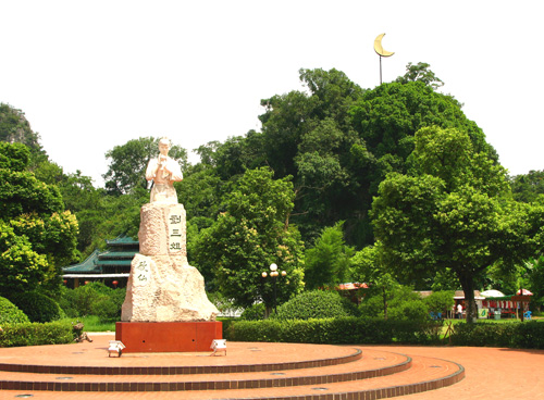 劉三姐石像氣氛熱烈。曲終人不散。正是”劉三姐歌、壯鄉(xiāng)女舞,歌舞喜迎眾游客;入鄉(xiāng)隨俗,同唱一曲,歡度桂林之行。