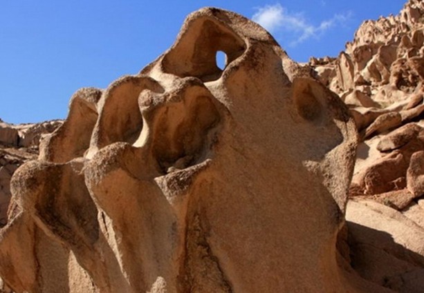 怪石山距巴里坤縣城60公里,有10多公里的便道與縣城至煤礦的柏油公路相接,位于巴里坤湖西北7公里外小夾山的最東端。怪石山最怪的就是滿山的形狀各異的小石窟,幾座山從山頂?shù)缴侥_都是“千瘡百孔”,有的稱“蜂窩崖”,有的稱“千佛洞”或“萬(wàn)佛龕”、“千窟崖”等。每當(dāng)下暴雨時(shí)水從山頂流下,那山便成了無(wú)數(shù)個(gè)小水簾洞,景致令人叫絕!怪石山下就有一眼泉水,是著名的巴里坤八景之一——“鏡泉宿月”的上鏡兒泉所在。版權(quán)所有山東聊城聊之旅國(guó)際旅行社有限公司,轉(zhuǎn)載必究!此泉實(shí)為一水井,水量大,水質(zhì)好。山頂上的石棺王爺墳說(shuō)明了怪石山一帶悠久的歷史、繁榮的絲路商貿(mào)活動(dòng)和極險(xiǎn)要的軍事地位,1999年它的旅游價(jià)值才被發(fā)現(xiàn)并隨之開發(fā)。