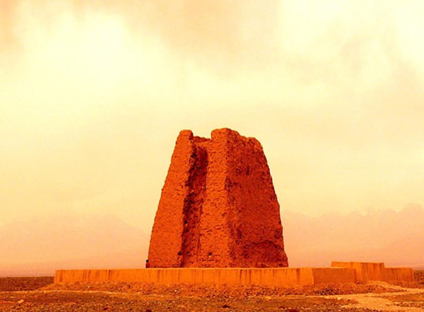 哈密地區(qū)最早的烽燧建于唐代,現(xiàn)境內(nèi)尚遺存唐烽燧4座,這就是哈密二堡的拉克蘇木烽燧、柳樹泉的下馬不拉克烽燧、巴里昆三塘湖烽燧、伊吾前山闊吐爾肖納烽燧。它們距今已有1200多年的歷史。而現(xiàn)今保存的絕大部分烽燧則都是清代建筑的。目前烽燧分布密度最高的是巴里坤縣城往西至薩爾喬克一線,這里每隔2—3千米就有一座,連綿相望有13座之多,城如岑參詩所云:“寒驛遠(yuǎn)如點,邊烽互相望”,蔚為絲綢之路的一大壯觀!薩爾喬克烽隧和巴里坤南湖濱的兩個烽燧形狀基本相同,基座成正方形,隧體為向上收縮的棱柱形,均為夯土建筑,夯土中夾有紅柳枝,并多用圓木構(gòu)架。薩爾喬克烽隧長寬,各8米,高7米多,隧體上下穿架著四層直徑8厘米左右的木棍。巴里坤湖濱烽隧離公路400米,隧題高大完整,長寬均達(dá)10米以上,高9米多,隧體中穿鑿的圓木直徑粗達(dá)25厘米,烽隧東南還有積新薪院落遺址。在落日余暉下串聯(lián)一線的巴里坤烽隧顯得格外的古樸、嚴(yán)整,它再現(xiàn)了古絲路昔日的輝煌。