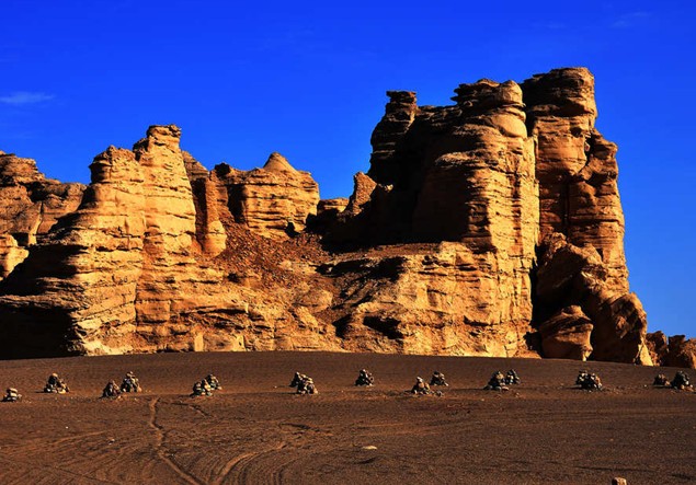 魔鬼城位于哈密市五堡鄉(xiāng)以南,距五堡鄉(xiāng)20Km,距哈密市約100Km,由于它神秘莫測(cè),不熟悉地形的人若遇風(fēng)暴,有迷失方向的危險(xiǎn),哈密雅丹地貌東起煙墩外的駱駝峰,經(jīng)雅滿蘇鐵礦,大南湖煤礦,到五堡沙爾湖十三間房等長(zhǎng)約400公里,寬約5-10公里,在哈密屬于特殊的地理環(huán)境,它是經(jīng)過漫長(zhǎng)的風(fēng)蝕自然而形成的。在魔鬼城可以看到那些酷似城堡、殿堂、佛塔、碑、人物、禽獸形態(tài)各異的景觀、令人眼花繚亂的陡壁懸崖、以及混跡巖礫中五光十色的瑪瑙、隨處可見的硅化木、枝葉清新的植物化石,偶爾可獲得象恐龍蛋化石的小圓石頭,海生的魚類化石、鳥類化石,當(dāng)夜幕降臨時(shí)有時(shí)會(huì)聽到鬼哭狼嚎令人發(fā)指的嘶叫,因此才被人們稱之為“魔鬼城”。 版權(quán)所有山東聊城聊之旅國(guó)際旅行社有限公司,轉(zhuǎn)載必究!其實(shí)這里還真正存在著古城堡建筑、古民房遺址―艾斯克霞爾古城堡:離地面約六米的風(fēng)蝕臺(tái)上的長(zhǎng)方形的土夯建筑有高約五米,前面有門有窗的居住地,這就是人類活動(dòng)之地、是古絲路的驛站或是哈密王朝的西南前哨,據(jù)當(dāng)?shù)厝送茰y(cè),此地西面的沙爾湖(由流沙通向羅布泊)干涸之前,這里也有村莊人家,當(dāng)水源游移(地殼變化)沙爾湖消失后,林木飛鳥在風(fēng)沙中,部分變?yōu)榛?,而此地居住的人只得背井離鄉(xiāng),連先祖的遺骨也移走了、至今僅有遺址。哈密魔鬼城已是國(guó)家AAA級(jí)景區(qū)。
