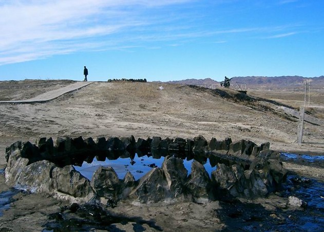 黑油山位于克拉瑪依東北部,距市中心兩公里多,是油田重要油苗露頭的地方,因原油長年外溢結(jié)成一群瀝青丘,最大的一個高13米,面積0.2平方公里,油質(zhì)為珍貴低凝油。"克拉瑪依” 維吾爾語為“黑油”,故這個天然石油瀝青丘且得名黑油山。這座黑色的瀝青山以及它地下埋藏的石油在這里已沉睡上億年。由于地殼變動,巖石產(chǎn)生斷裂破碎,地下石油受地層壓力影響,巖石裂隙不斷向地表滲出。