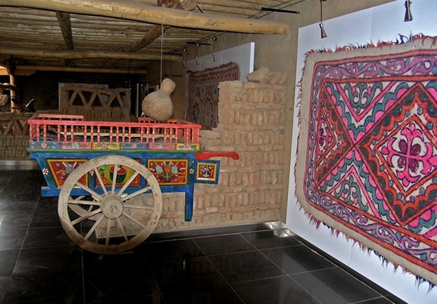 鄉(xiāng)巴藝棧是大漠土藝館歷時(shí)兩年建造而成的,可以說它是新疆維吾爾民俗藝術(shù)的精華薈萃之地,可讓游客在飽覽新疆民俗展示的同時(shí),還可以親歷參與民間手工藝的制作流程。展品括土陶制品、桑皮紙、民族傳統(tǒng)服裝、鞋帽、艾德萊絲綢、土織機(jī)、土印花布、花氈、土機(jī)琢玉、帕拉斯織毯土機(jī),木制品如木箱、搖床、旋木碗土機(jī),金屬制品如銅壺、銅盤等等。這些民俗藝術(shù)品是土藝館歷時(shí)十載從民間收集來的,其中有的已消失,有的瀕臨滅絕,在民間已稀有且難以見到,鄉(xiāng)巴藝棧是大漠土藝館為挽救民族民間藝術(shù)遺產(chǎn)所作的一項(xiàng)工作,是維吾爾民俗的一個縮影。