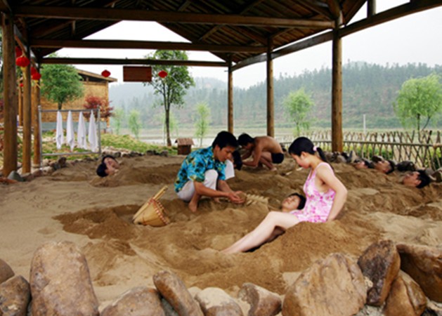 沙療,即沙埋療法,是西北內(nèi)陸沙漠地區(qū)人民利用當(dāng)?shù)氐莫毺貧夂驐l件、地理條件治療疾病的一種方法。就是將病體部位埋入沙中,利用陽光、干熱、壓力、磁力〔沙療所沙比外地沙含磁礦高9倍〕的綜合作用治療疾病的一種民間治療方法。用以治療風(fēng)濕性關(guān)節(jié)炎、慢性腰腿痛等,據(jù)說有效率達90%以上。吐魯番市西北16公里處,有兩座黑灰色大沙丘,是理想的沙療地。