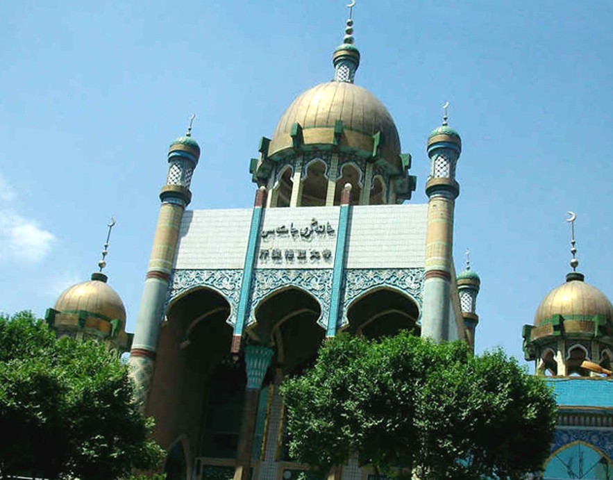 汗騰格里寺位于市南門。因寺院地處南門,故得名南門大寺。1902年進(jìn)行過重建,1987年前,在原來南關(guān)清真寺的基礎(chǔ)上又加以擴(kuò)建,改用今名“汗騰格里”(王中之王的意思),是市內(nèi)較大的維吾爾族清真寺之一。重建后的大寺,位于南門臨街,坐西向東,外觀壯麗,造型美觀,四座高大尖塔,簇?fù)碇虚g的大圓屋頂,兩側(cè)另有兩個(gè)小圓頂陪襯,具有濃郁而典雅的伊斯蘭建筑風(fēng)格。
