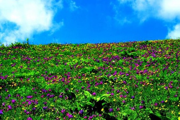花兒溝在新地鄉(xiāng)政府西南6.2公里處,溝中具有近千畝的花草地。顧名思義,它是一條既美麗又富有歷史意義的地方,清代光緒年間,因這里地處偏僻,土地肥沃,水源充沛,適宜種植各種農(nóng)作物。當(dāng)?shù)剞r(nóng)民為了發(fā)財,就在溝內(nèi)偷偷種起花兒(即大煙)那時候新疆戰(zhàn)亂已經(jīng)平息,左宗棠的部隊(duì)解甲歸田。版權(quán)所有山東聊城聊之旅國際旅行社有限公司,轉(zhuǎn)載必究!其中有一個田總統(tǒng)(相當(dāng)于團(tuán)長)看中這塊地方,就帶領(lǐng)幾個結(jié)拜兄弟獨(dú)霸花兒溝,在那里廣種花兒,販賣鴉片發(fā)了大財。田總統(tǒng)爆富之后,一連討了十五個老婆,生下了20多個子女,在當(dāng)?shù)睾貌伙L(fēng)光。俗話說:“近朱者赤、近墨者黑”。田總統(tǒng)全家都吸毒成癮,個個面黃肌瘦,寸步難行,到此地步,他才后悔起來,但吸毒容易解毒難,全家人越吸(毒)越深,沒有大煙就在床上打滾撒賴,呼爹叫娘。田總統(tǒng)一氣之下讓手下人把種下的花兒全部把光,但為時以晚了,他全家人終因中毒太深,最后落得家破人亡。今天的花兒溝再也不種花兒了,但花兒的名字卻仍流傳在人們的口頭上,歷史上的花兒溝已成為過去。今天的花兒溝再也不是過去的大煙花,而是五顏六色的天然花。它們是赤芍、貝母、雪蓮、黃芪、黨參、當(dāng)歸、柴胡等二十多種名貴藥材的花,它們才是名副其實(shí)的大自然花兒溝。曾被作為科幻片《天火傳說》的拍攝地。