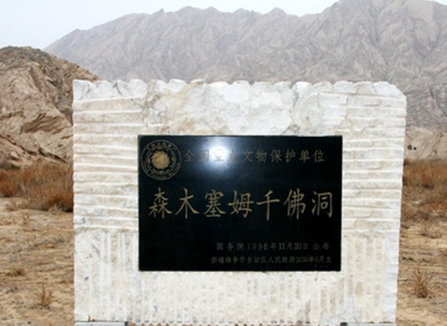 森木塞姆千佛洞屬全國(guó)重點(diǎn)文物保護(hù)單位,位于中國(guó)西北部新疆維吾爾自治區(qū)的庫(kù)車(chē)縣,是一處晉代至宋代(公元4~10世紀(jì))的佛教石窟群遺址。森木塞姆千佛洞主要分布于卻勒塔格山口直徑約800米范圍內(nèi)的山崖上。石窟大部分已經(jīng)遭到破壞,目前保存較為完整的有57座。洞窟分布在馬蹄形的山谷里,按地理位置可分為東、南、西、北、中五個(gè)區(qū),現(xiàn)有編號(hào)洞窟57個(gè)。