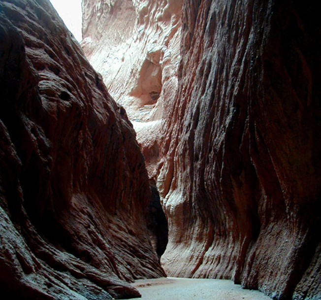 天山大峽谷又稱克孜利亞大峽谷,位于新疆阿克蘇地區(qū)庫車縣北部,(古稱龜茲)城北64千米,北緯42°8′,東經(jīng)83°5′。呈東向西縱深長約5.5公里。為紅褐色巖石經(jīng)風雕雨刻而成,峽谷曲徑通幽,別有洞天,山體千姿百態(tài),峰巒直插云天,溝中有溝,谷中有谷。南天門、幽靈谷、月牙峽、虎牙橋、魔天洞、雄師淚等景觀造型生動,形態(tài)逼真。距谷口1.4公里處的山崖上有一處唐代石窟,版權所有山東聊城聊之旅國際旅行社有限公司,轉載必究!窟內南、北、西壁上有殘存壁畫和漢文字。距峽谷700米處另有一峽谷,與神秘峽谷相伴。天山神秘大峽谷,集人間峽谷之妙,兼天山奇景之長,蘊萬古之靈氣,融神、奇、險、雄、古、幽為一體。景異物奇,令人神往。1999年發(fā)現(xiàn)后,游人日益俱增;2002年元月榮升為國家AA級旅游名勝風景區(qū)。為古絲綢之路黃金旅游線上新增了一顆璀璨的明珠。神秘的“天山大峽谷”距離庫車縣城約70公里,谷口十分開闊,深谷之中卻是峰回路轉,時而寬闊,時而狹窄,有些地方僅容一人側身通過。谷底比較平坦,兩側是高聳的石壁,腳下是細沙,有些路段還一層淺淺的積水。谷內奇峰異石千姿百態(tài),數(shù)不勝數(shù),神犬守谷、旋天古堡、顯靈洞、玉女泉、臥駝峰等景觀個個形態(tài)逼真。神秘而久遠的的阿艾石窟,距離谷口不足2公里,高懸于絕壁之上,最初僅可攀著30多米高的懸梯而上,現(xiàn)已修建石階棧道。據(jù)專家鑒定,石窟建于盛唐初期。石窟很小,深不足5米,約一人高,洞頂呈拱形??邇热娼杂袣埓娴谋诋?,而壁畫上竟然罕有地出現(xiàn)了漢字,與古西域地區(qū)其他數(shù)百座石窟相迥異,充分顯示漢文化的痕跡。