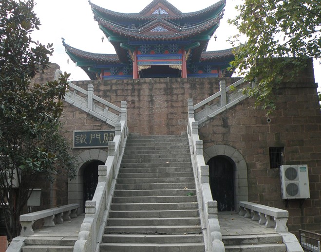 “鐵門關(guān)”有兩處:庫(kù)爾勒鐵門關(guān)和武漢鐵門關(guān)。庫(kù)爾勒鐵門關(guān)位于庫(kù)爾勒市北郊8公里處,扼孔雀河上游陡峭峽谷的出口,曾是南北疆交通的天險(xiǎn)要沖,古代“絲綢之路”中道咽喉。晉代在這里設(shè)關(guān),因其險(xiǎn)固,故稱"鐵門關(guān)",列為中國(guó)古代二十六名關(guān)之一。謝彬《新疆游記》中有"兩山夾峙,一線中通,路倚奇石,側(cè)臨深澗,水流澎湃,日夜有聲,彎環(huán)曲折,時(shí)有大風(fēng),行者心戒"的記述?!端?jīng)注》中稱鐵門關(guān)所在的峽谷為"鐵門關(guān)",后人叫它"遮留谷"。鐵門關(guān)自古以來(lái)就是兵家必爭(zhēng)之地,關(guān)旁絕壁上還留有"襟山帶河"4個(gè)隸書大字。如今關(guān)旁山坡上還留有古代屯兵的遺址。西漢張騫銜命出使西域曾路經(jīng)鐵門關(guān),班超也曾飲馬于孔雀河,故而人們又稱孔雀河為飲馬河"。唐代邊塞詩(shī)人岑參登鐵門關(guān)曾賦詩(shī)一首:"鐵關(guān)天西涯,極目少行客,關(guān)旁一小吏,終日對(duì)石壁,橋跨千仞危,路盤兩崖窄。試登西樓望,一望頭欲白"。這首詩(shī),真實(shí)而生動(dòng)的描繪出了鐵門關(guān)的險(xiǎn)峻,前涼楊宣部將張植進(jìn)屯鐵門關(guān),擊敗焉耆王龍熙于遮留谷。