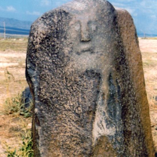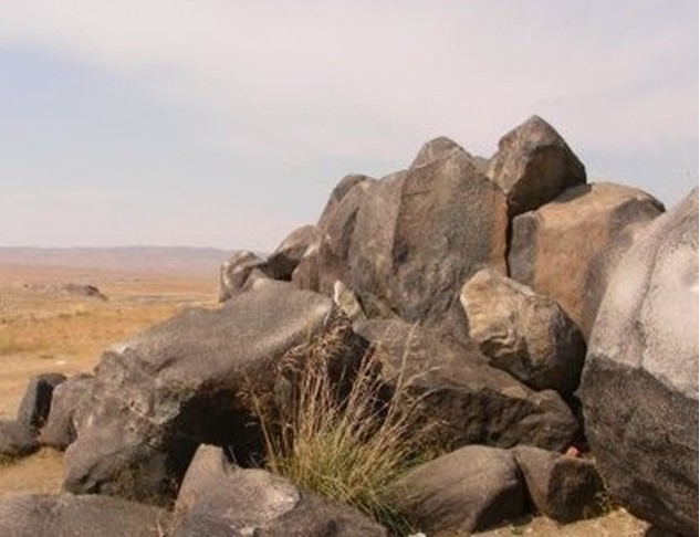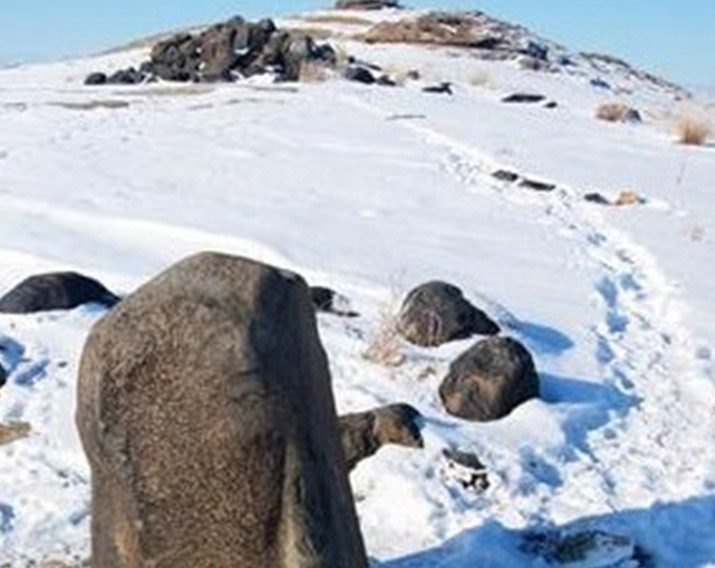 隕石散落堆積在東西長約40米,南北長約110米的戈壁灘上,最大一個隕石堆,高約3米,約百余塊,石塊呈灰黑色,質(zhì)地堅密,棱角平滑,最大的一塊長度達2.5米。著名的卡擔塔什石人墓就位于隕石群堆西面約400米處,墓穴四周用黑石一圈圍護,墓邊兩塊高約1 米的黑石上分別刻有一男一女的人像,版權所有山東聊城聊之旅國際旅行社有限公司,轉載必究!據(jù)推測這是墓主人的遺像。女主人頭帶著頭巾,圓形臉,酷似現(xiàn)在游牧民族蒙古族婦女。從石料的顏色和質(zhì)地推測,石像就是從隕石堆中搬運來的隕石體雕刻成的。 該黑色巖石巖性致密,其中有些石塊中空,用石擊之能發(fā)出鐘磬般響聲。