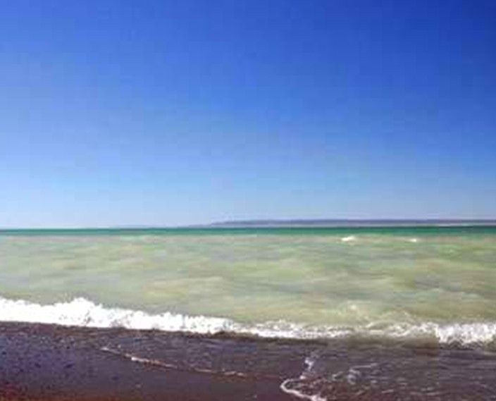 烏倫湖位于準(zhǔn)噶爾盆地西北邊緣,分為大海子和小海子兩部分,其中大海子(布倫托海)是咸水湖,小海子(吉力湖)是淡水湖。兩湖之間有省道穿過(guò)。大海子?xùn)|岸靠近省道的地方有一片細(xì)膩潔白的沙灘,長(zhǎng)約十公里,適合進(jìn)行沖浪、劃船、滑板等水上娛樂(lè)。這里湖水清澈,湖岸蘆葦叢生,黃昏可觀晚霞落日,景色迷人。小海子在大海子南邊,湖中有一鳥(niǎo)島,海鷗、天鵝、野鴨……成群結(jié)隊(duì),翩然而至。湖中盛產(chǎn)魚(yú)類(lèi),岸邊小館子里有全魚(yú)宴,不可不嘗。