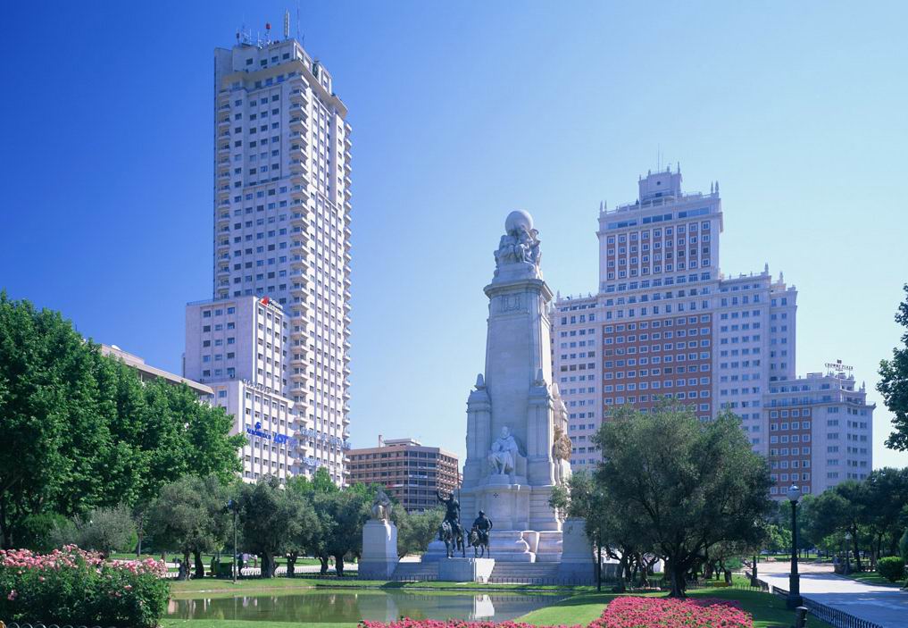 市內(nèi)現(xiàn)代化的高樓大廈與風格迥異的古建筑摩肩并立、相映生輝。樹林、草坪和各種造型別致的噴泉和雕有古代小亞細亞人尊崇的自然女神尼貝萊塑像噴泉最吸人入勝。宏偉的阿爾卡拉門坐落在阿爾卡拉街頭的獨立廣場上,共有5道拱門,是馬德里著名的古建筑之一。財政部、教育部和西班牙的主要銀行坐落在阿爾卡拉大街兩側,建于1752年的王家美術學院收藏著牟利羅和戈雅等西班牙美術大師的名作。巍峨的塞萬提斯紀念碑聳立在西班牙廣場上,碑前有堂吉訶德和???bull;潘扎的塑像,巨大的碑身倒映在前面的水池之中,碑兩側是蔥郁的樹木;有“馬德里塔”之稱的西班牙摩天大廈位于廣場一側。