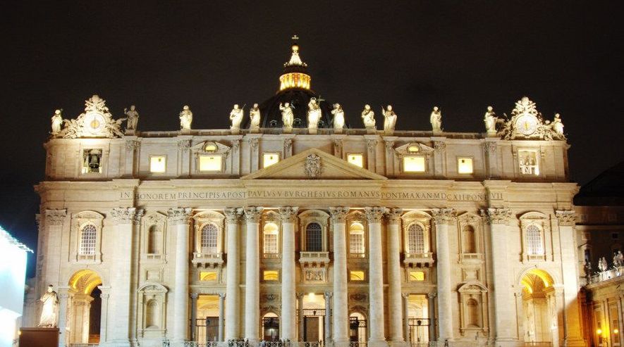 教堂最初是由君士坦丁大帝于西元326-333年在圣彼得墓地上修建的,稱老圣彼得大教堂,于西元326年落成,為巴西利卡式建筑。16世紀,教皇朱利奧二世決定重建圣彼得大教堂,并于1506年破土動工。在長達120年的重建過程中,意大利最優(yōu)秀的建筑師布拉曼特、米開朗琪羅、德拉?波爾塔和卡洛?馬泰爾相繼主持過設計和施工,直到1626年11月18日才正式宣告落成,稱新圣彼得大教堂。1870年以來的重要宗教儀式均在此舉行。為文藝復興式和巴洛克式建筑風格,屬世界最大的教堂。
