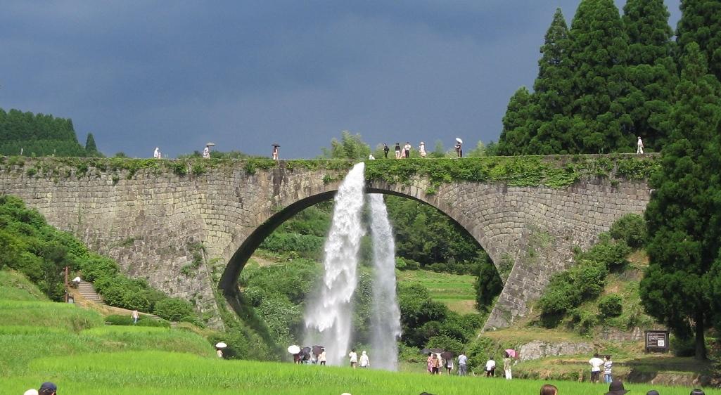 通潤(rùn)橋建于1852年(嘉永5年)年12月至1854年(嘉永7年)7月29日,是日本最大的拱橋式水道橋。1960年被指定為國(guó)家重要文化財(cái)產(chǎn)。