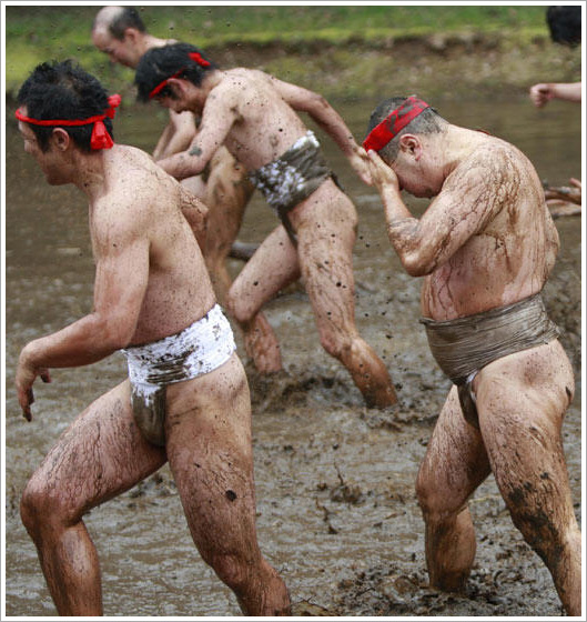 每年的2月25日,在日本千葉縣四街道市郊外的稻田里,居民 們參加一年一度的“泥漿節(jié)”。