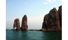 高山島,屹立于廟島群島中部西側(cè),隸屬砣磯鎮(zhèn)。這個(gè)面積僅有0.46公里的無(wú)居民小島,在諸島排列中列第12位。它集海蝕崖、海蝕洞、海蝕柱、海蝕礁、海蝕階地和海積卵石灘于一身;納高雄、險(xiǎn)峻、幽深、粗獷靈秀于一隅。它裸露著胸懷,放蕩無(wú)拘地把海島的地質(zhì)遺跡向世人全方位的展示,可謂長(zhǎng)島地區(qū)地質(zhì)遺跡的“天然地質(zhì)公園”。