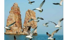 萬(wàn)鳥(niǎo)島又稱車由島,坐落于長(zhǎng)島諸島中部偏東,這個(gè)海拔73.5米、僅有0.05平方公里的小島,在浩渺的汪洋大海之中,簡(jiǎn)直是一粒微不足道的沙粒,然而海深魅力大,島小情趣多,島上棲居著上萬(wàn)只海鷗,被稱為“萬(wàn)鳥(niǎo)島”。萬(wàn)鳥(niǎo)島,又稱車由島,遠(yuǎn)遠(yuǎn)望去,酷似一艘錨泊的登陸艦。全島海岸線長(zhǎng)1.25公里,海岸地貌懸崖陡壁占90%以上,這些如劈如削的斷崖,多石英巖與極巖,破碎性強(qiáng),經(jīng)風(fēng)化和海蝕,崖壁此凸彼凹,石階、石臺(tái)、石窟、石穴鱗次櫛比,形成一座自然的海鷗“石樓”。
