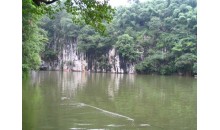 陽(yáng)春玉溪三洞全長(zhǎng)3公里,均可坐船瀏覽。第二洞長(zhǎng)330米,水深2-5米,水面寬20-30米,河水清澈如玉,水中多生長(zhǎng)鯉魚(yú)。洞中景物豐富,尤以“三變石”為趣,詩(shī)人張永枚曰:“遠(yuǎn)似漁翁釣清流, 近如獅子滾繡球,忽變犀牛望明月,一石三景迷輕舟”。第一洞頂?shù)摹盎使凇笔?,酷似皇冠,游人在船上隨即可拍攝一幅頭戴皇冠的照片。
