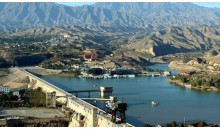 在甘肅永靖縣境內(nèi)。黃河兩岸崇山峻嶺, 形成峽谷。1974年建成具有發(fā)電、防洪、灌溉、養(yǎng)殖、航運等功能的綜合性水利樞紐工程。一條長840米、高147米的巨大攔河壩把黃河攔腰斬斷, 形成了劉家峽水庫(庫容57億立方米,水域面積130平方公里),大壩下安裝了五臺國產(chǎn)大型水輪發(fā)電機(jī)組,成了總裝機(jī)容量122.5萬千瓦年發(fā)電量57億度的黃河上游第一座水力發(fā)電站。