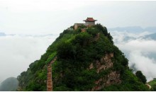 從山西成子溝沿山路盤(pán)環(huán)而上,過(guò)熊洞拾級(jí)登峰,自西向東挺起兩座突兀的奇峰,西峰孤立陡險(xiǎn),俗稱(chēng)西頂;東峰雄偉平坦,號(hào)稱(chēng)東頂。兩頂相距約200多米,中間有石路相連,遠(yuǎn)遠(yuǎn)遙望猶如姐妹兩人對(duì)峙爭(zhēng)艷,人稱(chēng)姐妹峰,是觀日出和看云海的理想之地。東頂西頂早在唐代就興建有廟宇,以后經(jīng)過(guò)歷代擴(kuò)建,整修,到清末已有大小三十余座廟宇殿閣。