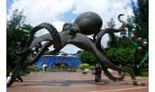廈門海底世界占地17.5公頃,總建筑面積7500平方米。它是由新加坡華僑與鼓浪嶼風(fēng)景區(qū)建設(shè)開發(fā)公司合作興建的,總投資1000萬美元。這座花壇簇?fù)淼暮K{(lán)色水晶宮建筑,第一期工程先后建成了海洋館、企鵝和淡水魚館。其入口處在主體建筑外60米地方有一個(gè)設(shè)計(jì)獨(dú)特、別具一格、張牙舞爪的章魚雕,高6米、跨徑11.2米。它是廈門海底世界的標(biāo)志性建筑,也是游客們首先拍照留念的景觀。