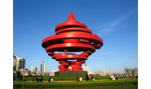 該雕塑以青島作為“五四運動”的導火索這一主題充分展示了島城的歷史足跡,深涵著摧人向上的濃厚意蘊。雕塑取材于鋼板,并輔以火紅色的外層噴涂,其造型采用螺旋向上的鋼板結(jié)構(gòu)組合,以洗練的手法、簡潔的線條和厚重的質(zhì)感,表現(xiàn)出騰空而起的“勁風”形象,給人以“力”的震撼。