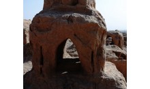 這是一片據(jù)傳已有數(shù)百年歷史的維吾爾古墓群。起伏錯(cuò)落的墓葬,綿延數(shù)平方公里。既有土垣環(huán)列的家族墓園,也有形單影只的孤冢墳丘;既有高大氣派的墓門(mén)拱拜,而更多的是排列有序的平民墳塋。在這里,游人可更多地了解到維吾爾族葬喪習(xí)俗,還可通過(guò)雕飾精巧造型別致的墓門(mén)、墓室外,進(jìn)一步了解到維吾爾族建筑、繪畫(huà)等藝術(shù)風(fēng)格。
