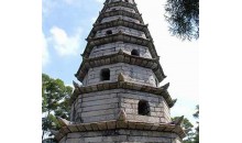 據(jù)清光緒《嘉應州志》載,由南漢王劉鋹始建于大寶八年(公元965年),距今已有一千多年歷史。鐵塔分為七層,身高4.2米,呈四方形,塔底邊長1.6米,為生鐵鑄成,每面鑄有大小佛像250個,四面合計為一千佛,故名千佛塔。原塔建于修慧寺,因寺毀,清乾隆初年嘉應州官王者輔將鐵塔移于梅城東巖山頂,上面蓋亭宇,周圍筑欄桿,并砌石階,以供游覽者登臨觀賞。