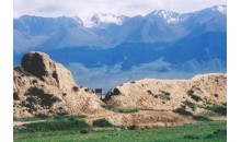 拉甫去克古城位于哈密市五堡鄉(xiāng)四堡村內(nèi),東距哈密市65公里。為漢─唐時(shí)代城址。地理坐標(biāo):東經(jīng)92°54′28″,北緯42°56′16″,海拔614.2米。1957年被列為新疆維吾爾自治區(qū)文物保護(hù)單位。古城頗具規(guī)模,有南北二城,平面呈“呂”字形。由于白楊河水自兩城間流過,致使古城遭受破壞。城內(nèi)已被辟為村民居住地或果園,原有建筑大多被毀。在古城內(nèi)外發(fā)現(xiàn)的陶片主要是夾砂紅、灰陶。多為輪制,火候較高。紋飾以花邊刻線和附加堆紋為主。