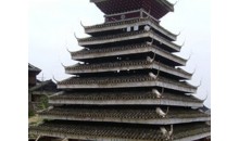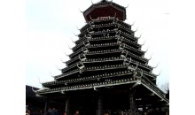 地坪風(fēng)雨樓 這是貴州省最大、造型最美的風(fēng)雨橋。長(zhǎng)達(dá)50多米的地坪風(fēng)雨橋始建于清光緒二十年即公元1894年,1959年毀于火災(zāi),1964年重建。整座橋不用一釘一鉚,而運(yùn)用杠桿力學(xué)原理,將大小不一的柱、枋、檁、凳、欄桿等全部用杉木鑿榫穿枋構(gòu)成。橋體為長(zhǎng)廊式木結(jié)構(gòu),橋上有一大兩小共三座橋樓。居中的大橋樓是鼓樓式建筑,兩邊的橋樓皆為三層重檐雙斜面屋頂。