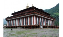 雍布拉康位于澤當(dāng)11公里的扎西次日山上?!坝翰肌币鉃椤澳嘎埂?,因扎西次山形似母鹿而得名,“拉康”意為“神殿”。雍布拉康是西藏歷史上第一座宮殿。據(jù)史書記載始建于公元前二世紀。松贊干布暑期由宮殿改作寺廟。文成公主初來西藏時每到夏季都會和松贊干布來這里居住。至五世達賴時又在原碉樓式建筑基礎(chǔ)上修了四角攢尖式金頂,并將其改為黃教寺院。