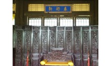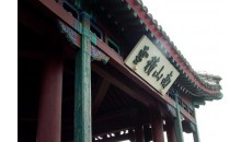 在麗正門北,是避暑山莊正殿。此殿規(guī)模宏大,殿前有外、內(nèi)午門,朝房、樂亭,后有四知書屋、寢宮等 建筑。內(nèi)午門為清帝每年到承德木蘭圍場進行秋獵時舉行小型閱射之所,門上懸有康熙我御書“避暑山莊”四字匾額,東西兩壁是乾隆御制《閱射六韻》詩刻石。殿建于清康熙四十九年(1710),乾隆十九(1754)全部用楠木改修,故又稱楠木殿。面闊7間,單檐卷棚歇山頂。