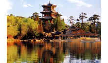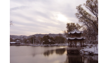 南山積雪亭位于山莊正北、青楓綠嶼南側(cè)的山頂上,是一處借景之作,為“康熙三十六景”第十三景。是山莊的制高點之一。 南山積雪亭為方形四角攢尖式敞亭,面積較大,在此可一覽眾峰?!澳仙椒e雪”是觀賞山莊初冬雪景為命題的一組苑景。塞北高寒,山莊之南,峰嶺環(huán)列,嶺上積雪經(jīng)久不消。登亭遙望,群山上的積雪“皓潔凝映,晴日朝鮮,瓊瑤失素”。直到初春時節(jié),仍是“不改冰霜積雪冬”的景象。