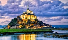 圣米歇爾山(Mont-Saint-Michel)位于法國諾曼底附近,是距海岸約1公里的巖石小島,為法國旅游勝地,也是教徒的朝圣地,山頂建有著名的圣米歇爾修道院。