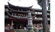 峨眉山圣水禪院原名神水庵、神水閣,有五重殿宇,全寺的殿堂和附屬房屋全系木制結(jié)構(gòu)。禪院原為明代安慶巡撫吳用先的舊居,因周圍“修竹萬竿”,有“水竹色相繞,碧花動(dòng)軒楹”(唐,孟郊 《旅次洛城東水亭》)的意境,取名“水竹居”。明萬歷末年(約公元1619年),因水竹居前有“玉液”神水,遂改宅為寺,名“神水庵”。寺院前有一塔,傳為隋代智者大師衣缽塔。