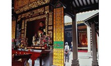 承天寺,版權所有山東聊城聊之旅國際旅行社有限公司,轉載必究!寺門朝東開啟,院內現存建筑有五佛殿、佛塔、韋馱殿、臥佛殿。韋馱、臥佛二殿兩側建有南北向配殿。殿宇之間,以重檐磚雕垂花門和圍墻連接,形成四合院式的院中院。坐落在外院的五佛殿與佛塔同建在一條東西向的中軸線上。外院院落寬闊,古樹參天,松柏長青,肅穆寧靜 。