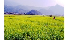 油菜花期,葉少枝繁,虬須互繞,姿豐勢旺。朵朵黃花巧著翠莖,緣下盤上,漸次綻開,撫枝細點,單株菜花均超千朵,體碩株壯者則花數(shù)難計。當微吹吹過,花朵輕搖,田野里一望無際的金色花海便仿若一層層的波浪,高低起伏,不斷向游人涌來,百里飄香。