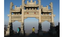中天門建于清,為兩柱單門式石坊。泰山古時多虎,古人在坊北建廟祀黑虎神,現(xiàn)廟內(nèi)塑財神趙公元帥執(zhí)鞭跨虎,東為仿古茶樓,西南為中溪賓館,西北為中天門索道站。中天門峻嶺闊谷,樓閣簇擁。東有中溪山突兀俏麗,可觀日出,望晚霞;西有鳳凰嶺蜿蜓伸展,可遠眺傲徠雄姿,俯視城廓新貌。佇立坊下,北瞻巍巍岱峰,眾山拱立,林茂泉飛,纜車凌空,天然成畫。