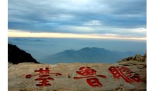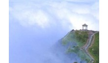 探海石,是位于岱頂?shù)囊粔K突兀伸出的怪石,其上可觀云海玉盤奇景。夏天,雨后初晴,大量水蒸氣蒸發(fā)上升,加之夏季從海上吹來的暖溫空氣被高壓氣流控制在海拔 1500米左右的高度時,如果無風(fēng),在岱頂就會看見白云平鋪萬里,猶如一個巨大的玉盤懸浮在天地之間。遠處的群山全被云霧吞沒,只有幾座山頭露出云端;近處游人踏云駕霧,仿佛來到了天外。