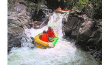 油田漂流礦泉景區(qū)位于惠州市龍門縣永漢鎮(zhèn)油田林場(chǎng)內(nèi)。距廣州、深圳、惠州、東莞均在100公里上下,有世界首創(chuàng)皮筏高臺(tái)沖水。漂流河道長3.5公里左右,由南昆山的清泉匯聚而成。漂流起點(diǎn)為山澗天湖,溪水由三米高臺(tái)奔騰而下。展現(xiàn)“人在鏡中游,艇在林間奔”的超凡意境。
