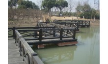 九曲橋九曲十八彎,且每個(gè)彎曲的角度大小不一,有大于90度直角的,也有小于90度直角的。九曲橋如今的橋面為花崗石板,每一彎曲處一塊石板上均雕刻一朵季節(jié)性花朵,如正月水仙、二月杏花、三月桃花……直到十二月臘梅;并在九曲橋頭尾的兩塊石板上各雕刻一朵荷花。在湖心亭茶樓門前的一段橋面,中間雕刻一朵荷花,四角則分別雕刻彩云。